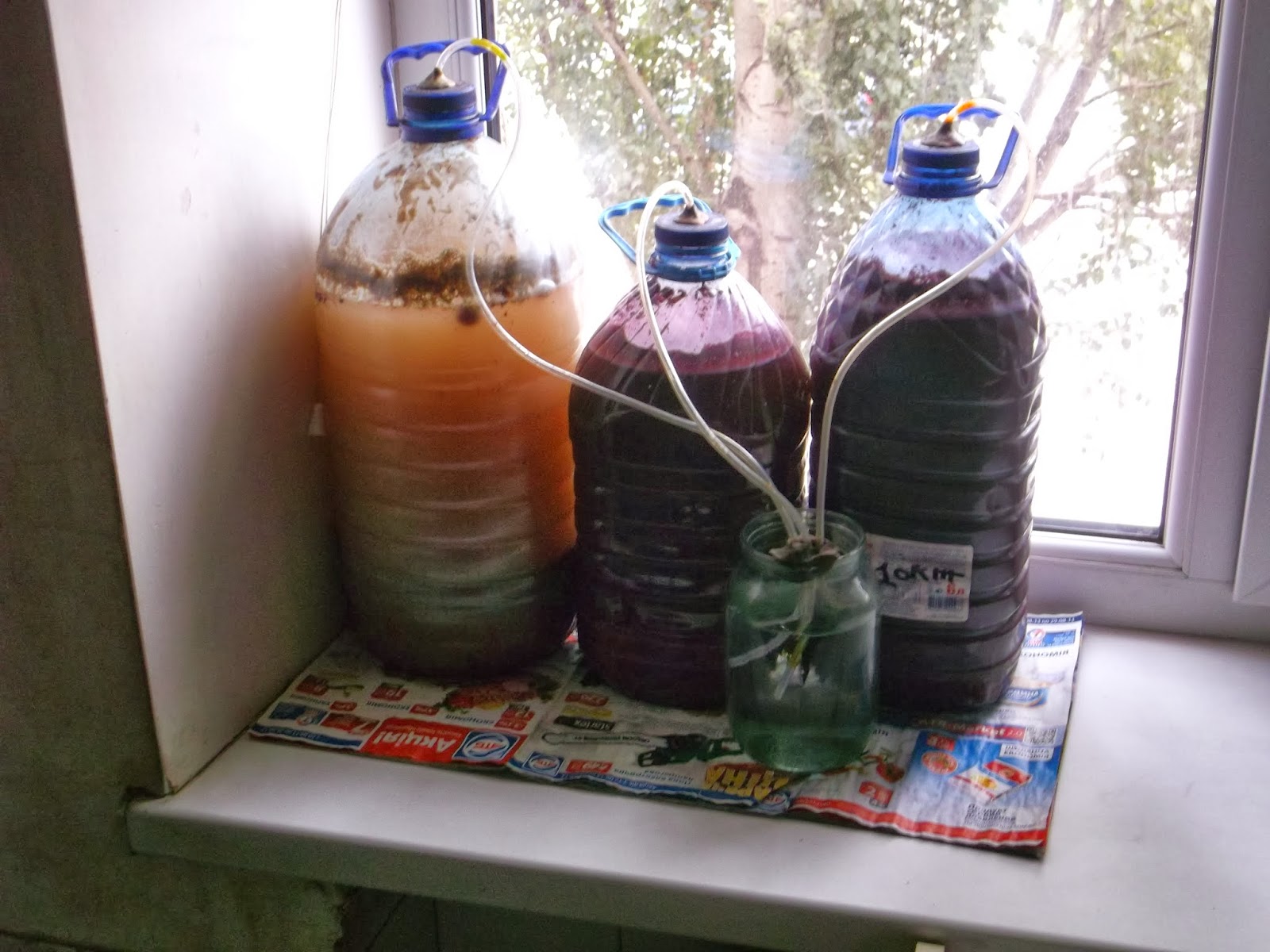 На этом видео показан процесс брожения - за ним нужно присматривать - чтобы трубочки не забились пеной (если в ёмкости многовато бродящего сока) и постоянно находились в воде.