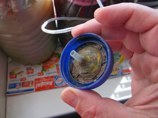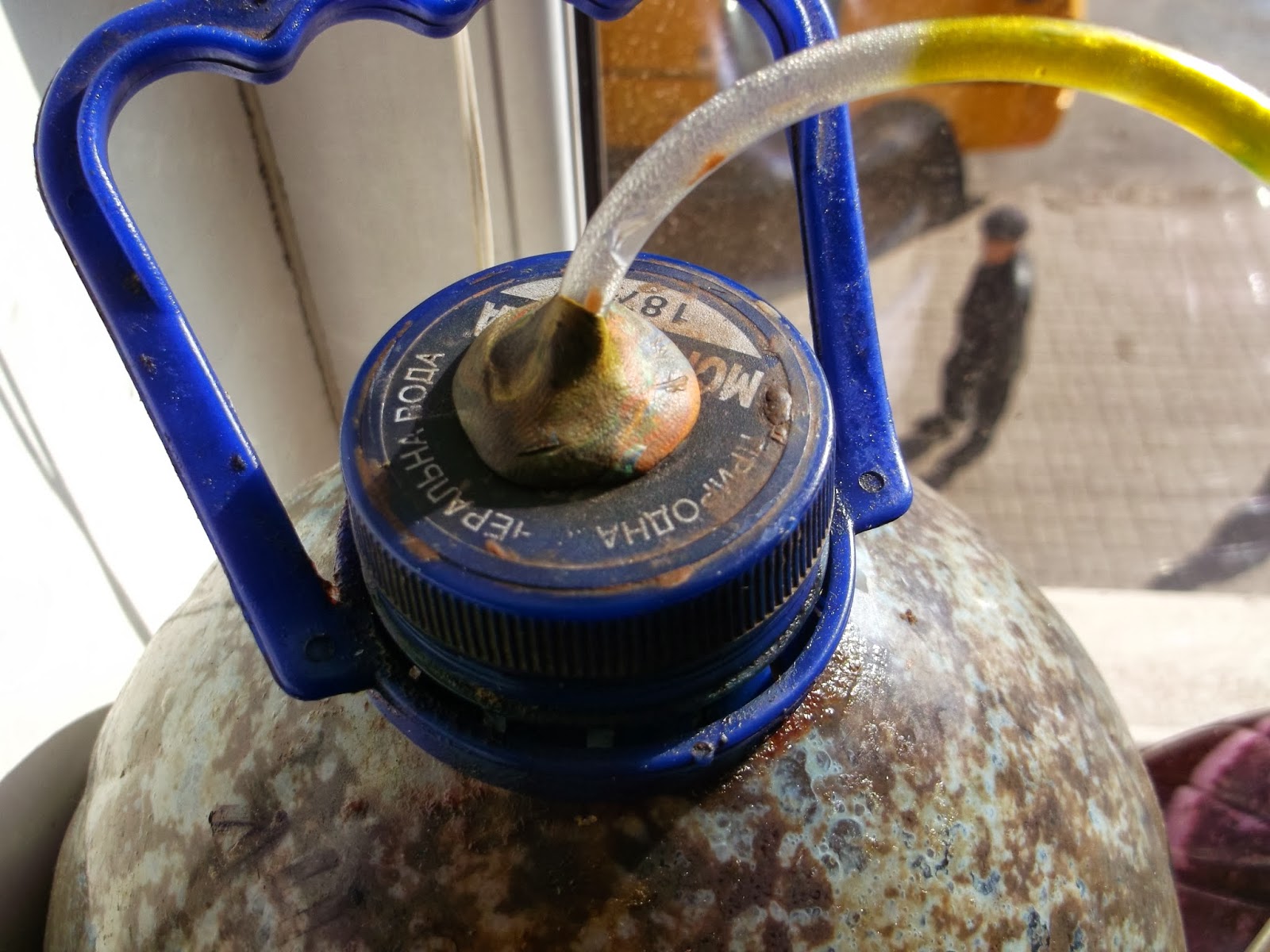 Крышки плотно закручиваем на ёмкости, а концы трубочек опускаем в банку с водой. Нужно это для того, чтобы углекислый газ, выделяющийся при брожении сока свободно мог выходить, а воздух наоборот, чтобы не попадал в будущее вино (от этого оно может превратится в уксус!). Практически сразу, как только ты сделаешь всё вышеперечисленное и показанное на картинке, - увидишь, как трубочки начнут булькать с интервалом 2-3 секунды (а через некоторое время, дня через два-три, гораздо чаще...), значит всё в порядке и процесс пошёл!